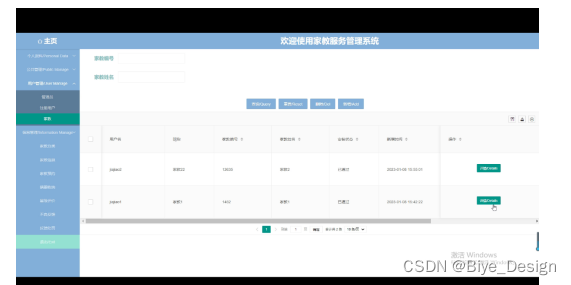 家教预约, 在此界面可查看用户提交的预约信息,可以进行查询,重置,审核等操作。如下图所示。