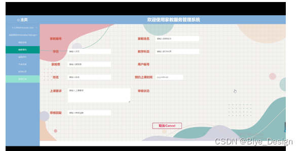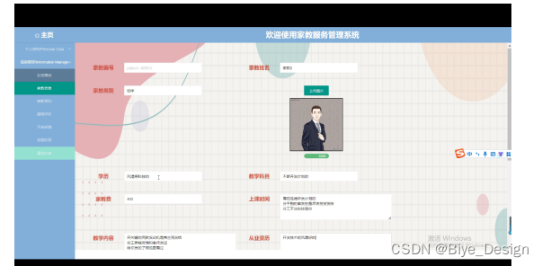 关键词:家教服务管理系统,Java,SpringBoot,Mysql