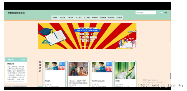 目前许多人仍将传统的单机设备作为信息管理的主要工具,而网络技术的应用只是起到辅助作用。在对网络工具的认知程度上,较为传统的office软件等仍是人们使用的主要工具,而面向各个专门行业的管理系统的信息管理软件仍然缺乏群众基础。本选题则旨在通过标签分类管理等方式,实现个人资料,公告管理(轮播图,平台公告),用户管理(管理员,注册用户,家教),信息管理(行业资讯,资讯分类,在线测试),家教分类,家教信息,家教预约,错题收纳,星级评级,不良反馈,反馈处罚等功能。