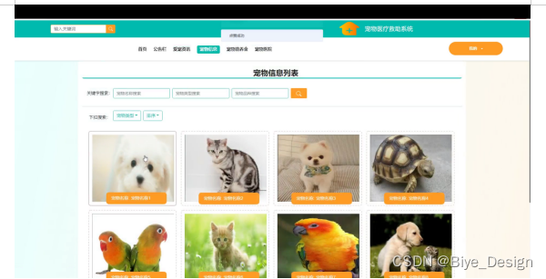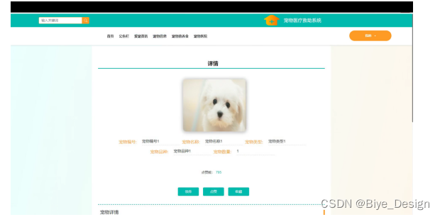 宠物信息,在此界面可以查看和搜索可领养的宠物信息,可以进行收藏,点赞,领养等操作,如下图所示。