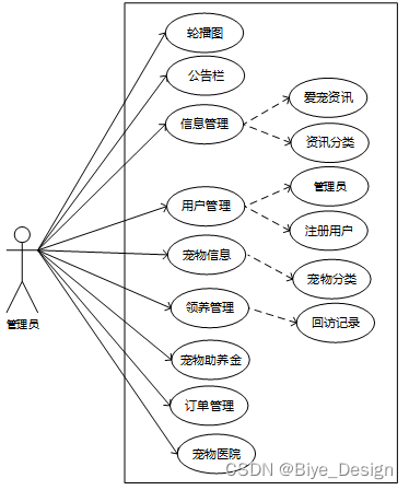 (1)功能要求:可以管理个人资料、公共管理(轮播图、公告栏)、用户管理(管理员、注册用户)、信息管理(爱宠资讯、资讯分类)、宠物分类、宠物信息、领养管理、回访记录、宠物助养金、订单管理、宠物医院等功能模块。