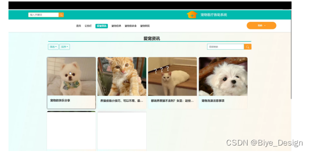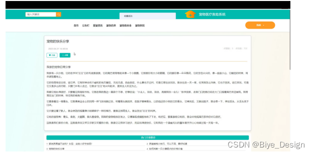 爱宠资讯,在此页面可以查看推荐的资讯信息,并通过筛选,排序等操作进行资讯信息查询,进入资讯详情界面后可以进行收藏,点赞,评论等操作,如下图所示。