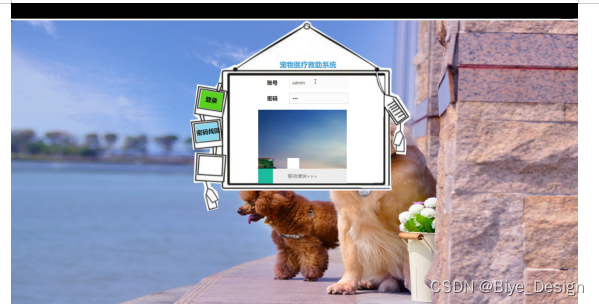 管理员登录,通过填写账号、密码、完成行为验证后登录即可进入宠物医疗救助系统,如图5-1所示。