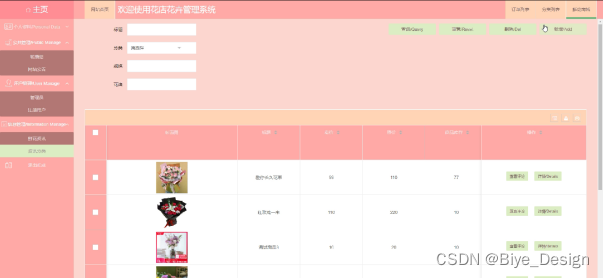 关键词 :花店花卉管理系统;SSM框架;Mysql数据库;