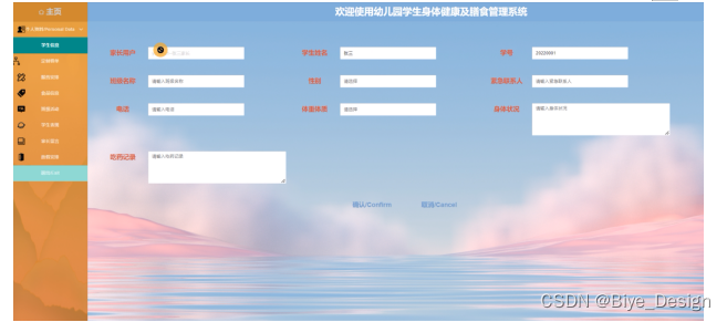 In the era of information technology in the 21st century, almost any industry cannot do without computers. It is also very common to apply computers to the physical health and dietary management of kindergarten students. In the past, manual management methods were used to manage the physical health and diet of kindergarten students, which caused problems such as cumbersome management and difficulty in maintenance. Nowadays, using computers to manage the basic information of kindergarten students' physical health and diet is not only convenient and simple compared to manual management, but also has multiple advantages such as easy management, fast search speed, and large storage capacity. Applying it to the physical health and dietary management of kindergarten students can not only improve the work efficiency of administrators in the physical health and dietary management of kindergarten students, but also make the physical health and dietary management system of kindergarten students more scientific and standardized. Under the continuous impact of the information age, the combination of the physical health and dietary management system of kindergarten students with computer technology will be a shortcut to improve the physical health and dietary management level of kindergarten students.