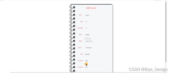 (4) 用户注册实体属性如下图4-5所示