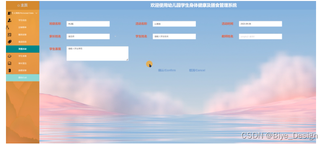 本文主要通过对幼儿园学生身体健康及膳食管理系统的前台和后台管理进行了功能性需求分析,对系统的安全性和可扩展性进行了非功能性需求分析。在详细的需求分析的基础上,根据系统的功能设计确定了数据库结构,实现完整的代码编写。幼儿园学生身体健康及膳食管理系统完成了主要模块的页面设计和功能实现。本文展示了首页页面的实现效果图,并通过代码和页面介绍了用户注册功能、学生信息、定制餐单、服药安排、食品信息、班级活动、学生表现、家长留言、放假安排等功能的实现过程。