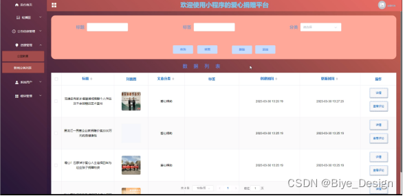 The development of the mini program's Love Donation Platform utilizes existing mature technology references, uses source code as a template, analyzes functional adjustments, and combines them with the actual needs of the mini program's Love Donation Platform management. It discusses the use of the mini program based Love Donation Platform management.