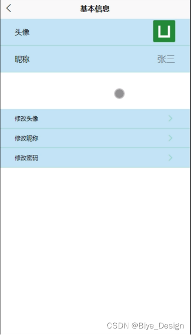 用户信息,在用户信息页面通过填写头像、昵称等信息并提交,进行保存,如图5-6所示。