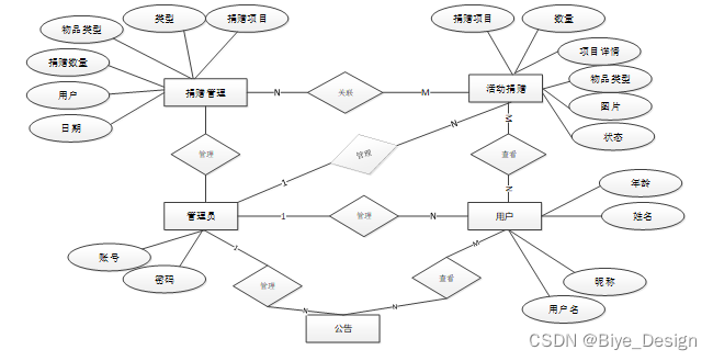 基于系统使用的数据库管理系统的特点,对数据库的概念模型进行了转换和构建。但是,这个系统只需要充分考虑 小程序的爱心捐赠平台的功能,而且组织比较清晰。
