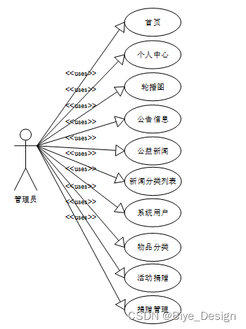 基于 小程序的爱心捐赠平台的设计基于现有的手机,可以实现管理员:首页、轮播图(轮播图管理)、公告信息管理(公告信息)、资源管理(公益新闻、新闻分类列表)、系统用户(管理员、系统用户)、模块管理(物品分类、活动捐赠、捐赠管理)、个人中心等详细的了解及统计分析。根据系统功能需求建立的模块关系图如下图: