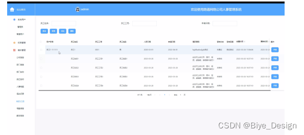 查找离职时,输入需要查找的离职名,调用getData方法获取所有数据并且进行分页,把获取到的所有数据显示到视图上,这时候只需要用脚本方法便能快速查找,不涉及对数据库操作。