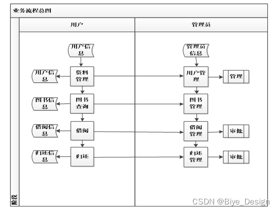 普通用户在系统前台后,数据库的借阅记录表生成借阅记录信息,管理员在图书借阅列表审核用户的借阅记录,审核通过,用户借阅成功,否则借阅失败。