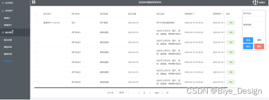 留言信息,在留言信息页面可以查看留言用户、留言标题、留言日期、留言内容等内容,并可根据需要进行重置、删除、添加等操作,如图5-7所示。