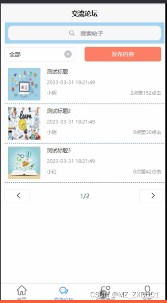 交流讨论,在交流讨论页面可以查看帖子标题、发布人、用户等信息进行评论,如图5-5所示。