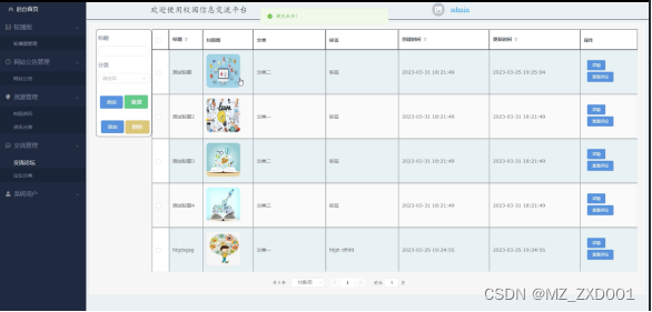 近年来,随着我国经济的不断发展,平台的管理制度越来越多。每个校园信息交流平台也都将通过计算机进行整体智能化操作,对于校园信息交流平台功能所牵扯的数据都是通过用户进行校园信息交流平台等相关的数据信息内容、并且可以进行管理员在线处理选择首页、轮播图、网站公告、资源管理(校园资讯、资讯分类)交流管理(交流论坛、论坛分类)系统用户(管理员、注册用户),可以通过系统进行分配,传统的交流方式信息已经无法满足用户的需求。为此开发了本校园信息交流平台 ,为用户提供一个基于校园信息交流平台,该系统满足了用户对校园信息交流平台信息获取的需求,并且信息可以及时、准确、有效地进行查看并且系统化、标准化和有效的工作。