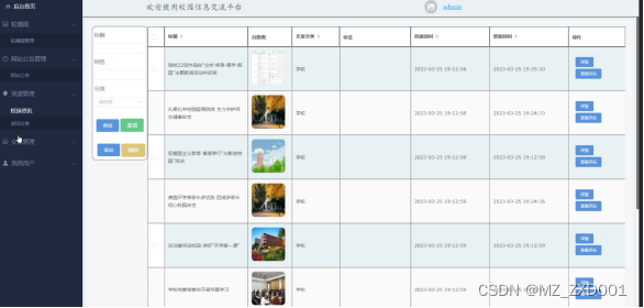 校园资讯,在校园资讯页面可以查看标题、封面、发布时间、内容等信息,如图5-4所示。