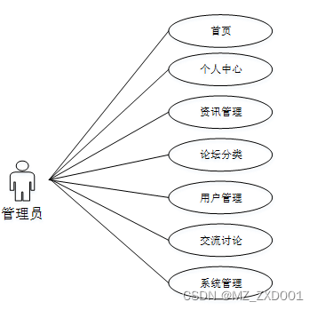用户通过登录进入到系统操作界面后,可以根据需求对首页、交流论坛、校园资讯、我的(个人中心、收藏)等模块进行管理维护操作。