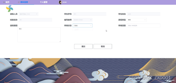请假申请,在此页面可以查看学生的请假申请信息,并进行审核操作。如图5-22所示。
