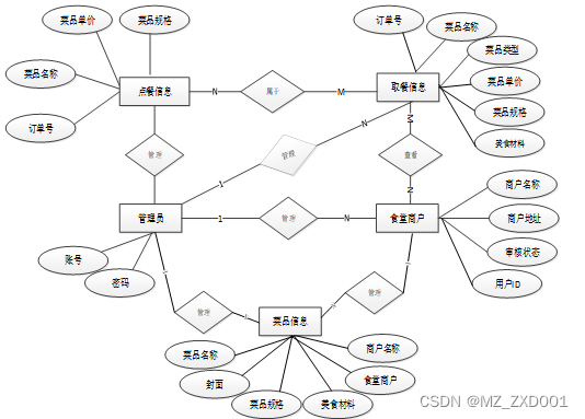 下面是整个校园食堂智能排餐系统中主要的数据库表总E-R实体关系图。