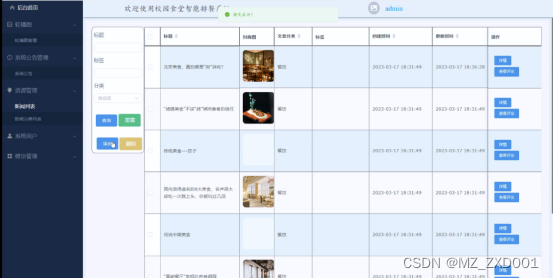(2)资源管理:当点击“资源管理”这一菜单的时候,会出现新闻列表+新闻分类列表两个子菜单,可以对这两个模块进行增删改查操作;