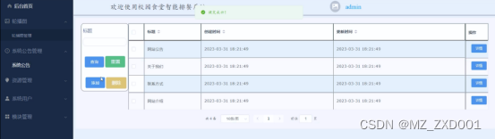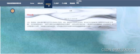 (3)系统公告:在首页导航栏上我们会看到“系统公告”这一菜单,我们点击进入进去以后,会看到所有管理员在后台发布的公告信息;