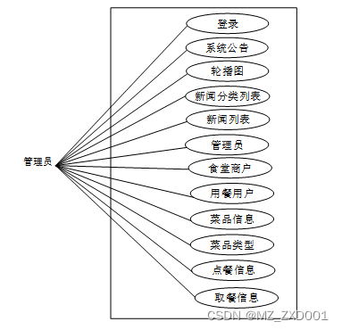 图2.2 校园食堂智能排餐系统管理员角色用例图