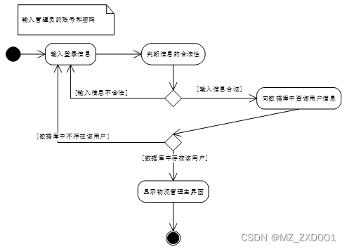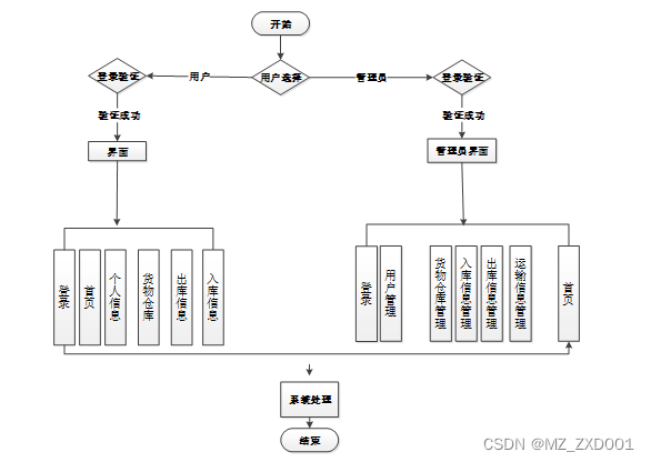 总体业务流程:以管理员的身份在登录页面输入账号和密码,经过数据库身份验证,验证成功后登录系统主页,可以使用系统,管理系统等功能操作 。