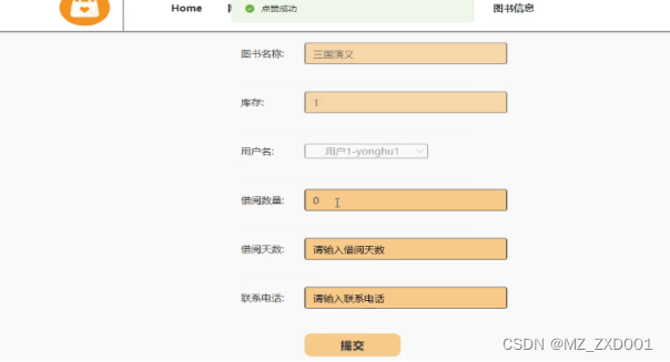 | 图书1 | A | 111 | 你好 | 添加成功 |