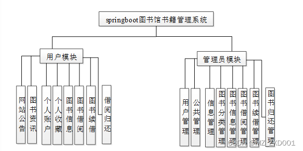根据用户对系统的需求,要求系统简单操作,能够准确,完整的对信息进行管理。图书馆书籍管理系统在对需求做解析后,整个系统主要分为两个部分:管理员和普通用户,每个模块下的分支功能不一样。对功能做出如下说明: