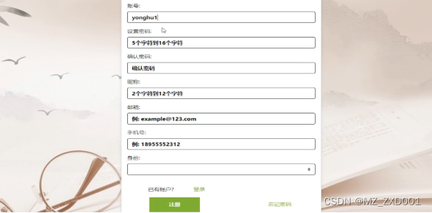 | 用户名 | 密码 | 确认密码 | 邮箱 | |