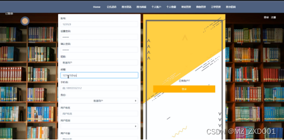 不是图书管理系统中正式用户的是可以在线进行注册的,如果你没有本图书管理系统的账号的话,添加“注册”,当填写上自己的账号+密码+确认密码+昵称+邮箱+手机号等后再点击“注册”按钮后将会先验证输入的有没有空数据,再次验证密码和确认密码是否是一样的,最后验证输入的账户名和数据库表中已经注册的账户名是否重复,只有都验证没问题后即可用户注册成功。注册界面实现了用户的注册,其注册界面展示如下图4。2所示。