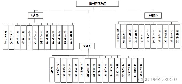 图书管理系统从角色上划分为了普通用户、会员用户和管理员三种角色。