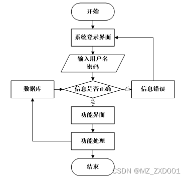 用户打开客户端并进入系统后,会先显示登录界面,输入正确的用户名和密码,系统自动检测信息,若信息无误,则用户会进入系统功能界面,进行操作,否则会提示错误无法登录,操作流程如图3-3所示。