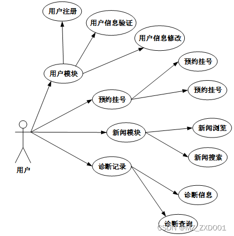 1.普通用户主要使用系统的医院预约挂号,下图所示为普通用户的用例图。