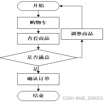 根据系统的功能需求,再分析该系统的业务流程,用户登录系统购买商品,先将商品加入至购买记录,然后对购买记录做调整,接着生成订单,订单生成后,在线支付金额,管理员管理商品,管理用户的订单。