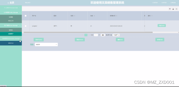 用户管理模块:要求用户信息可以展示在后台中,用户管理分管理员和普通用户两部分,管理员可以修改管理员的名字和密码,用户管理可以显示用户注册的信息、修改用户个人资料和删除用户的操作。