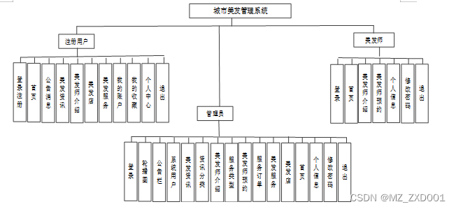 城市美发管理系统从角色上划分为了管理员、美发师以及注册用户三种角色。