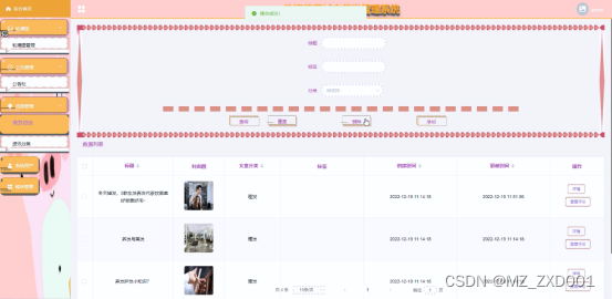(5)公告栏:管理员可以对系统前台展示的公告栏进行增删改查,方便用户进行查看。