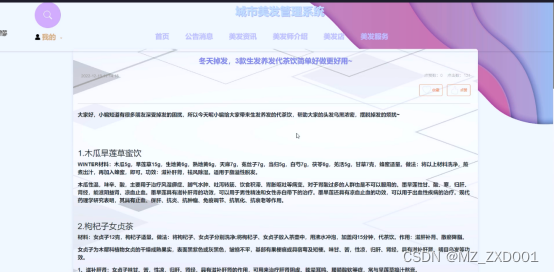 (3)美发资讯:用户可以查看美发资讯信息,在查询到自己想要了解的美发资讯的时候,可以进入查看详细的介绍进行评论、点赞、收藏操作。
