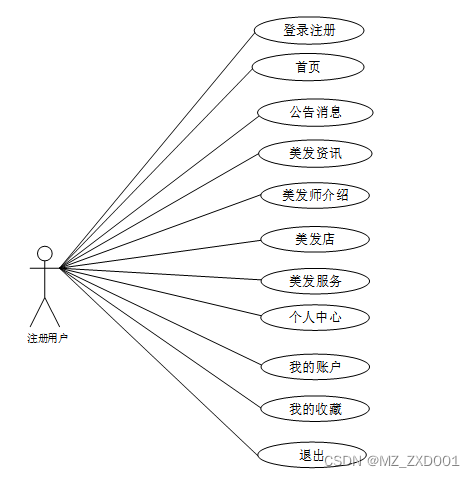 通过了解对城市美发管理系统的真实需求后,将城市美发管理系统所需要的角色划分整理成了下图2-1,图2-2和图2-3。