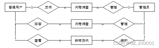 通过问卷管理系统的功能进行规划分成几个实体信息,实体信息将通过ER图进行说明,本系统的主要实体图如下: