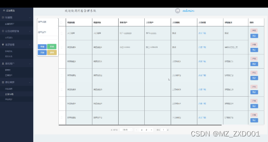问卷调查, 在前台界面图可查看其他用户发布的调查问卷,可下载问卷回答,点赞,收藏,评论等操作,还可在后台自己发布调查问卷,也可进行重置,添加等操作,如下图所示。