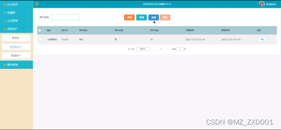 系统用户,在此页面可以查看系统用户的相关信息,还可在该页面对用户进行重置、添加和删除等操作,如图5-3所示。