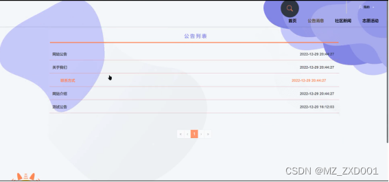 用户在点击导航栏上面的公告消息后,就可以搜索查看公告信息,用户根据自己的喜好可以进行交流,站内公告界面如下图5-10所示。