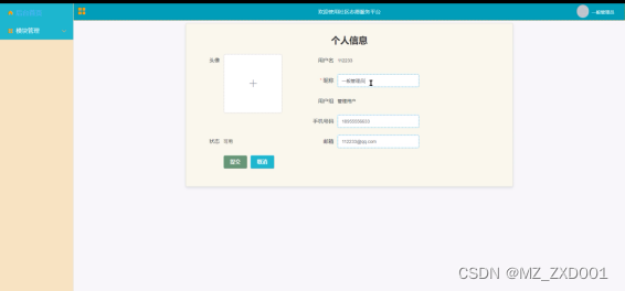 个人信息,管理者可在此页面进行密码、昵称、头像等进行修改,如图5-16所示。