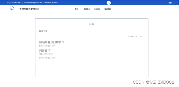 校园公告,在校园公告页面可以查看活动标题、内容、发布日期等信息,如图5-4所示。