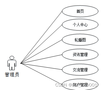 基于大学生综合交流平台的设计,可以实现首页、轮播图、校园公告、资源管理(校园资讯、资讯分类)交流管理(交流帖子、交流分类)系统用户(管理员、会员用户)等详细的了解及统计分析。根据系统功能需求建立的模块关系图如下图: