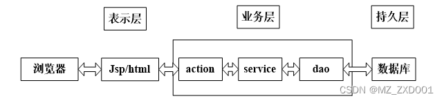目前B/S体系的系统主要的数据访问方式是:通过浏览器页面用户可以进入系统,系统可以自动对用户向服务器发送的请求进行处理,处理请求是在系统后台中进行的,用户在浏览器页面上进行相应操作,就能够看到服务端传递的处理结果。大学班级管理系统主要分为视图-模型-控制三层架构设计。在视图层中,主要是操作在服务器端向客户端反馈并显示的数据,在模型层中,主要处理相关的业务逻辑、数据整合等,最后的控制层它介于视图和模型之间,主要是调整两层之间的关系,最终落实数据的传递。