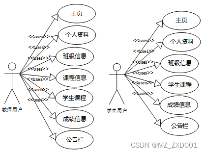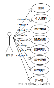 系统设计的目的是分析系统包括的所有功能结构,为开发人员设计开发和实现系统做好准备工作。经过前期的需求调查、分析和整理之后,确定的总体需求主要包括多个模块,分别是:主页,个人资料(个人信息,修改密码),用户管理(管理员,学生用户,教师用户),班级信息,课程信息,学生课程,成绩信息,公告栏。系统整体角色分为三个部分,一是管理员、二是教师用户、最后是学生用户。权限分布也是很明显,管理员用户是在除去浏览信息之外还具有查询和管理用户管理(管理员,学生用户,教师用户),班级信息,课程信息,学生课程,成绩信息,公告栏等权限;管理员是最高权限拥有者。